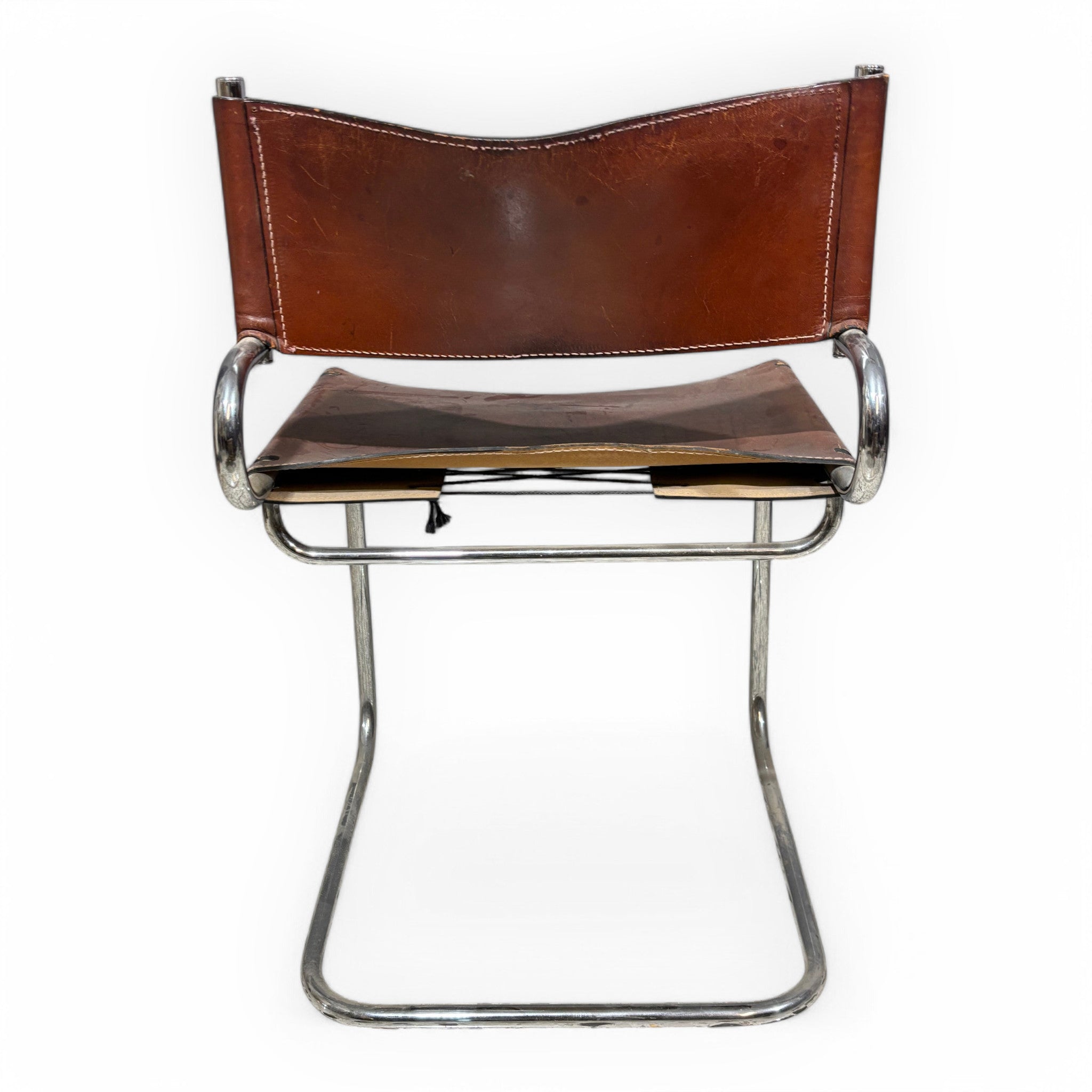 Splendida sedia in acciaio e cuoio, design di modernariato anni '70, Terrj, produzione Luigi Saccardo per Arrmet Italia