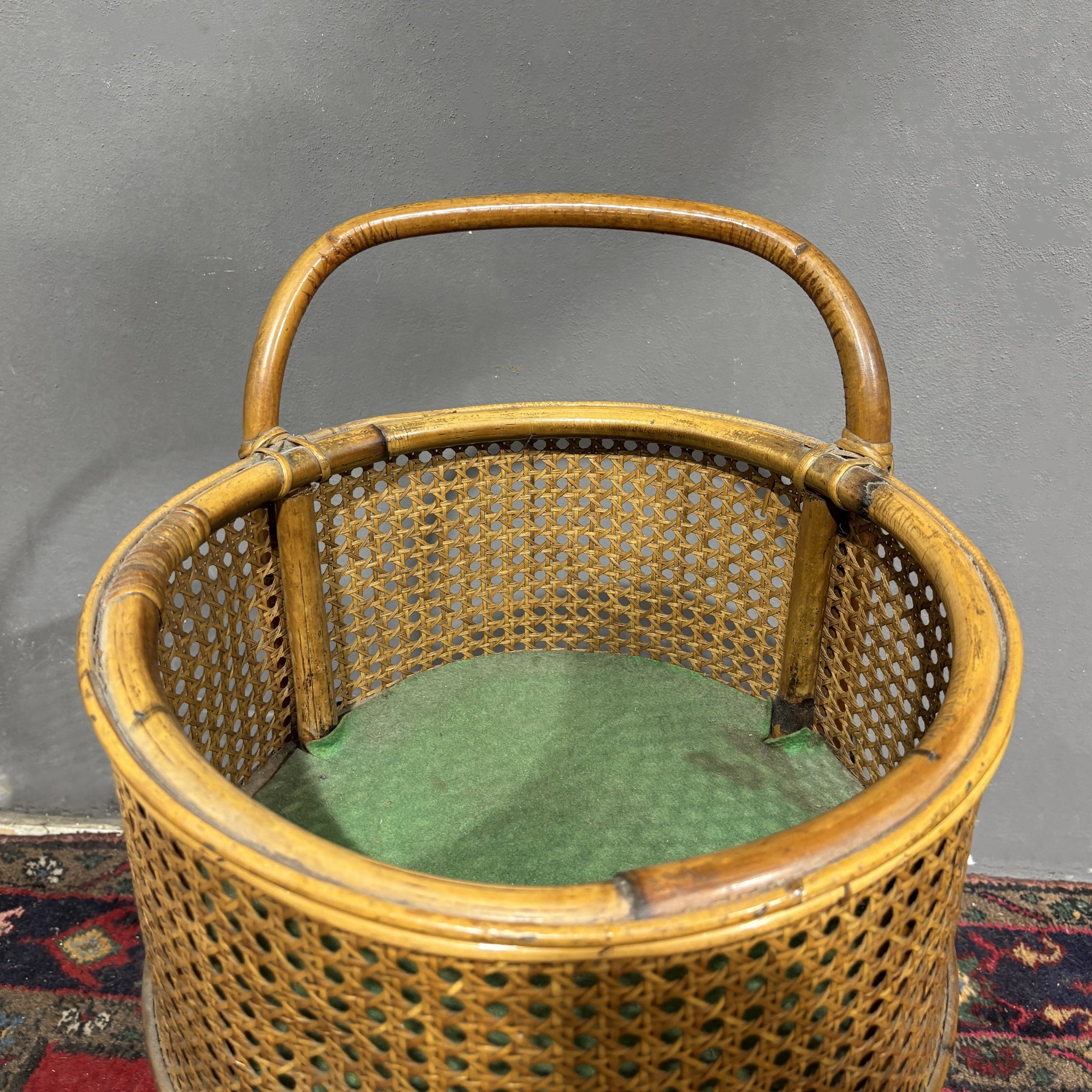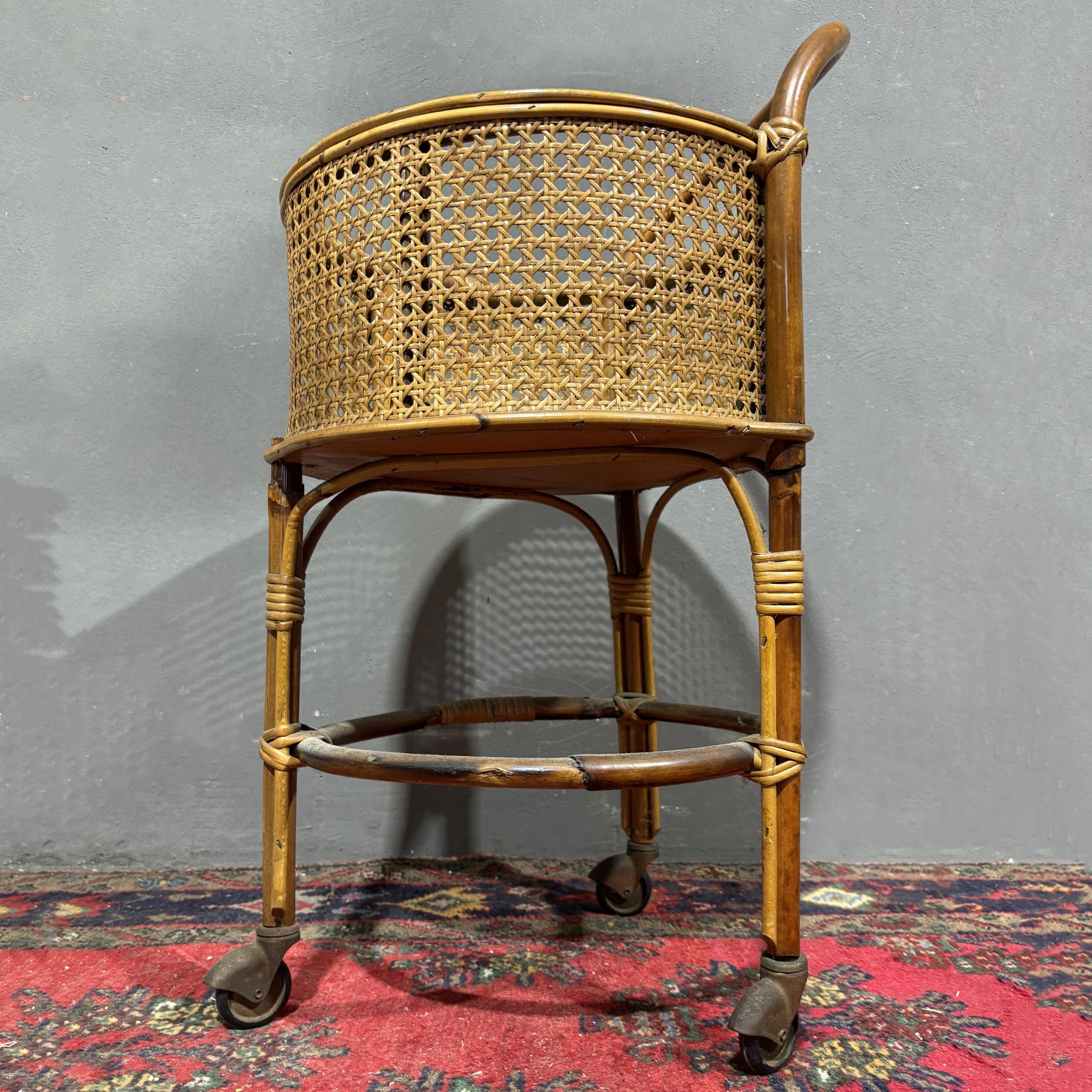 Delizioso carrello portaoggetti vintage realizzato in vimini e rattan intrecciato.