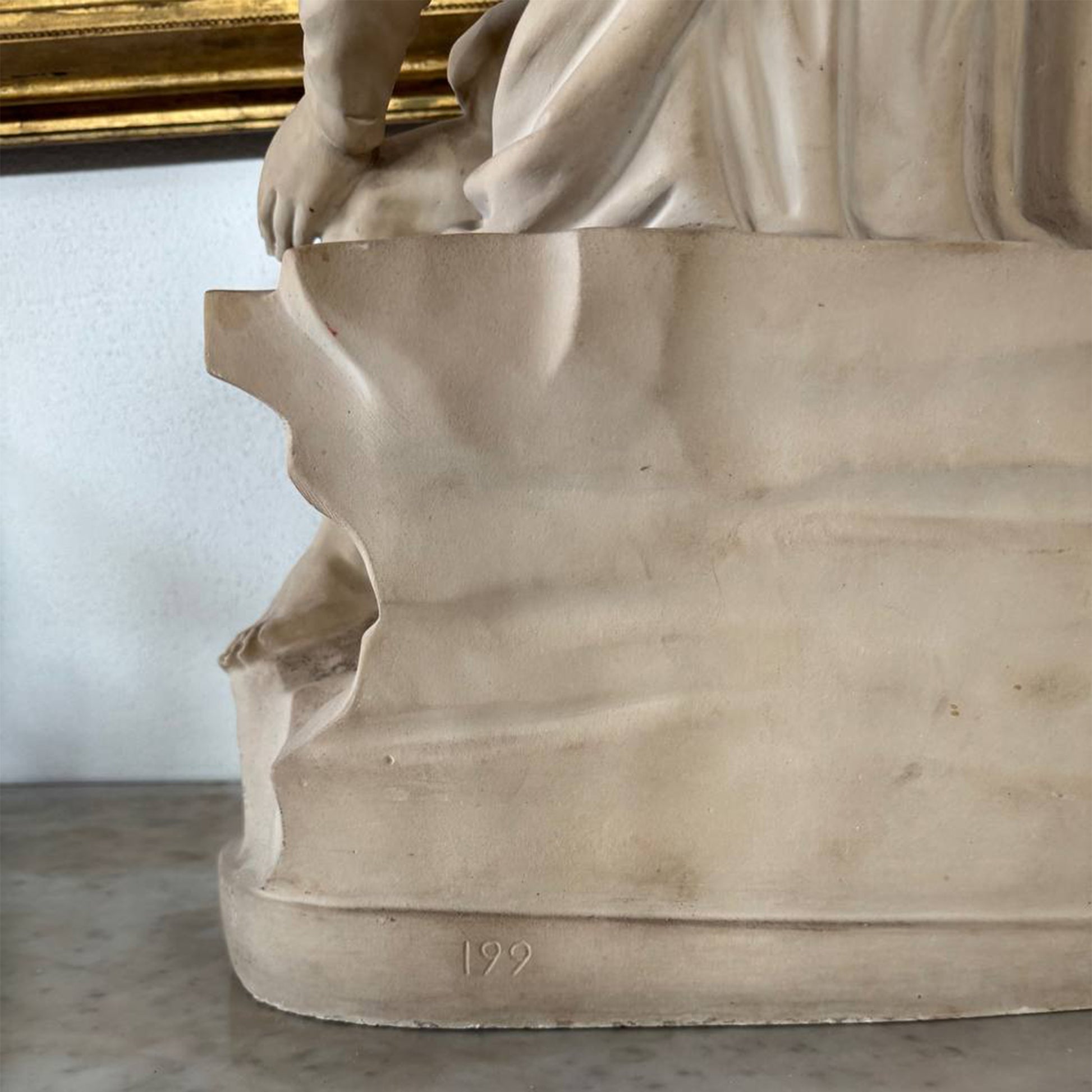Interamente realizzata in marmo, l’opera si distingue per la qualità della lavorazione e per l’equilibrio delle proporzioni, con una resa accurata dei panneggi e dei dettagli anatomici che conferiscono profondità e armonia all’insieme.