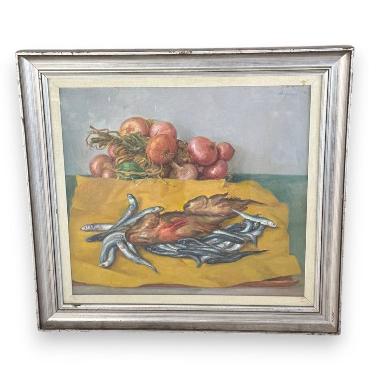 Manlio Alfieri – Dipinto su tela firmato – Natura morta Scorfano e alici