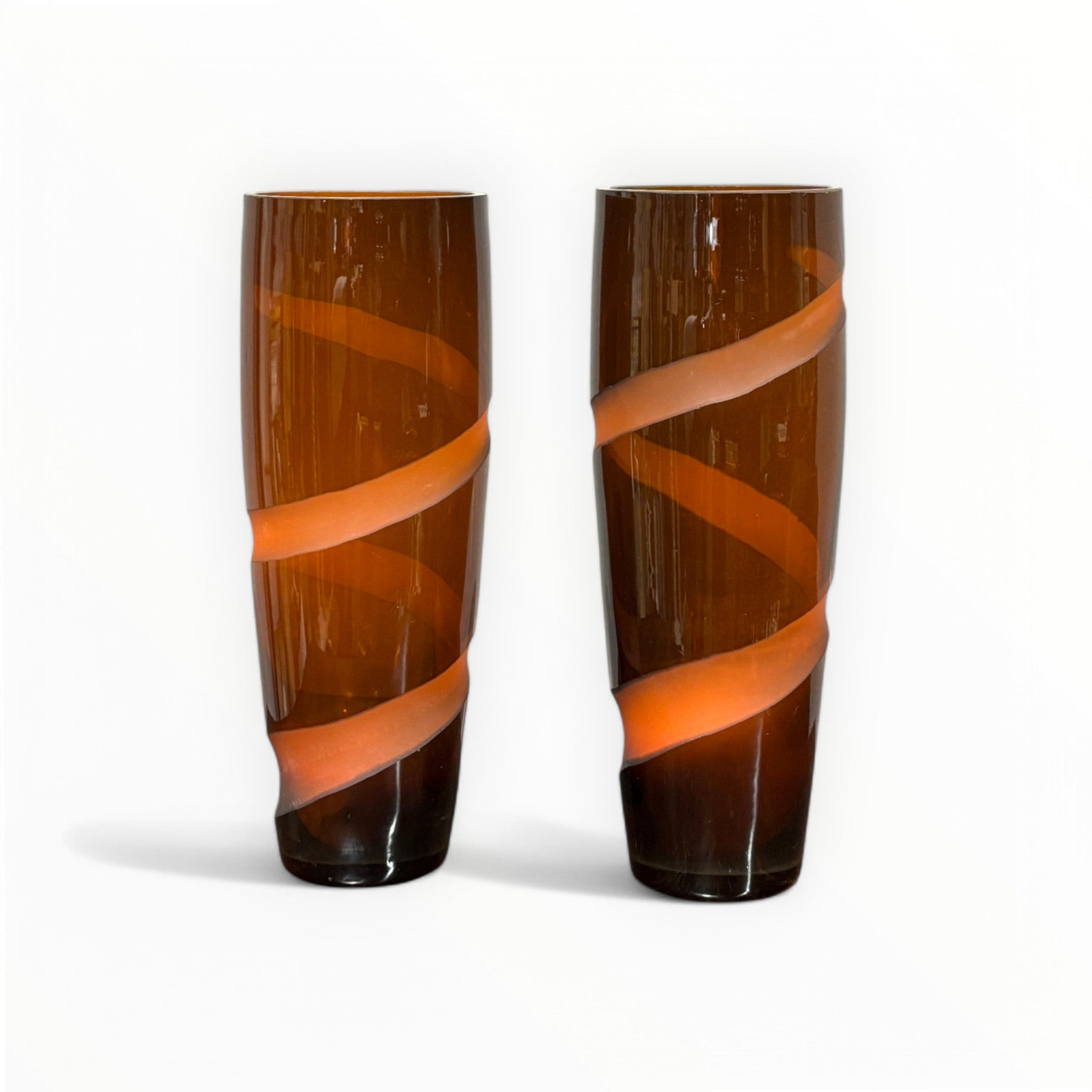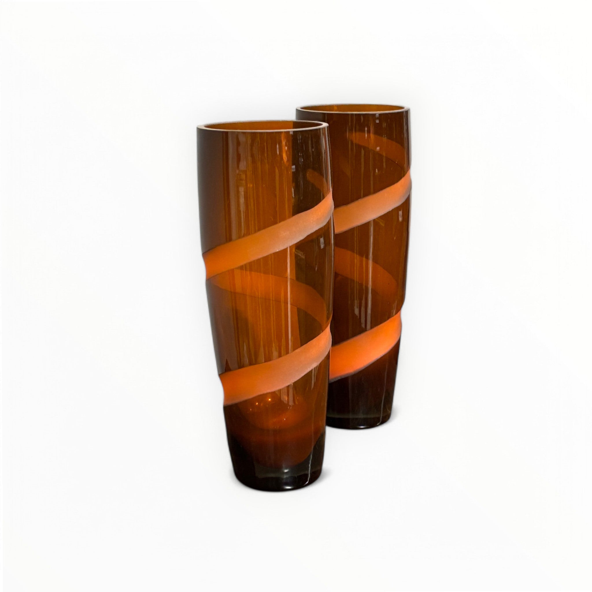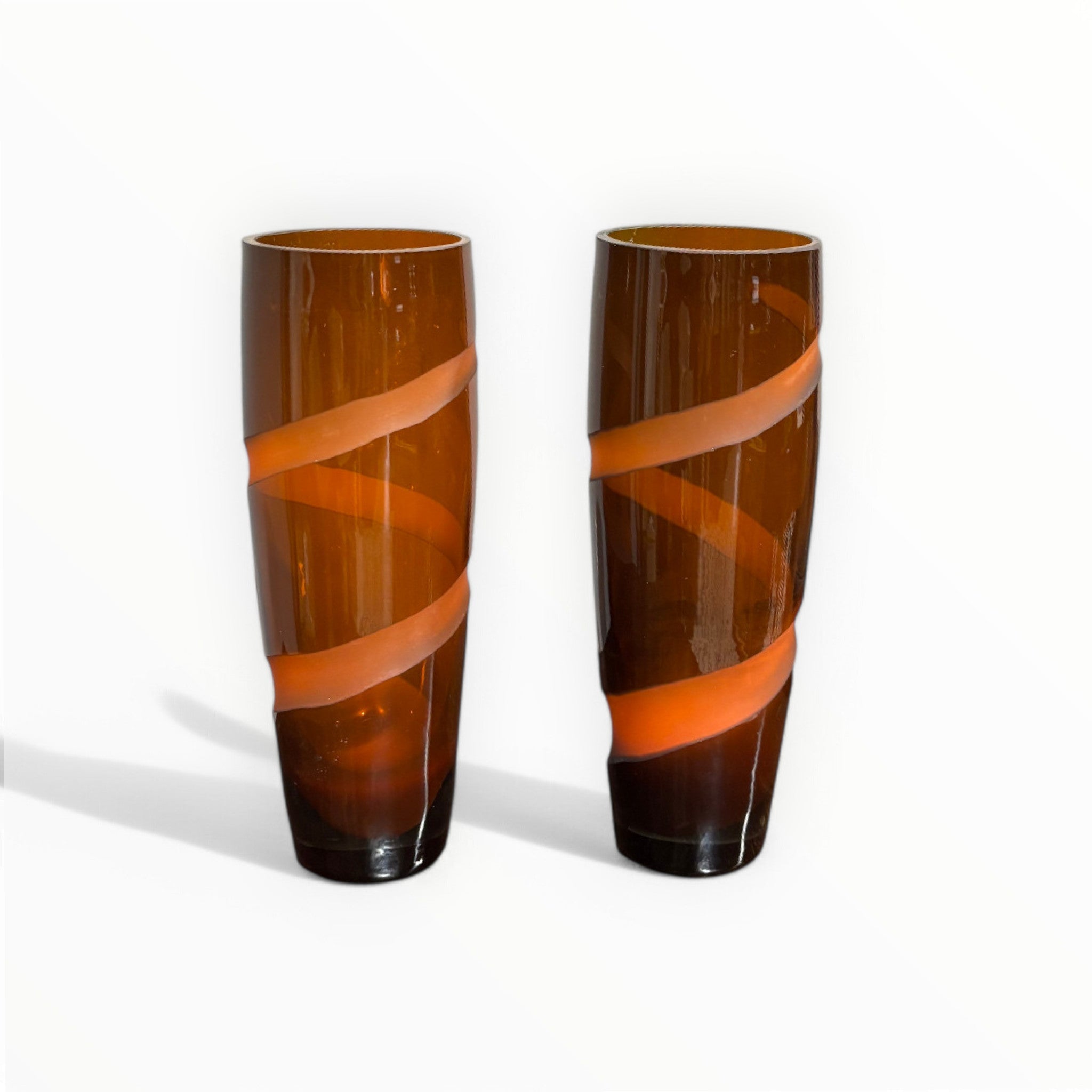 Splendid Pair of Murano Glass Vases, decorated with a hand-ground ribbon.