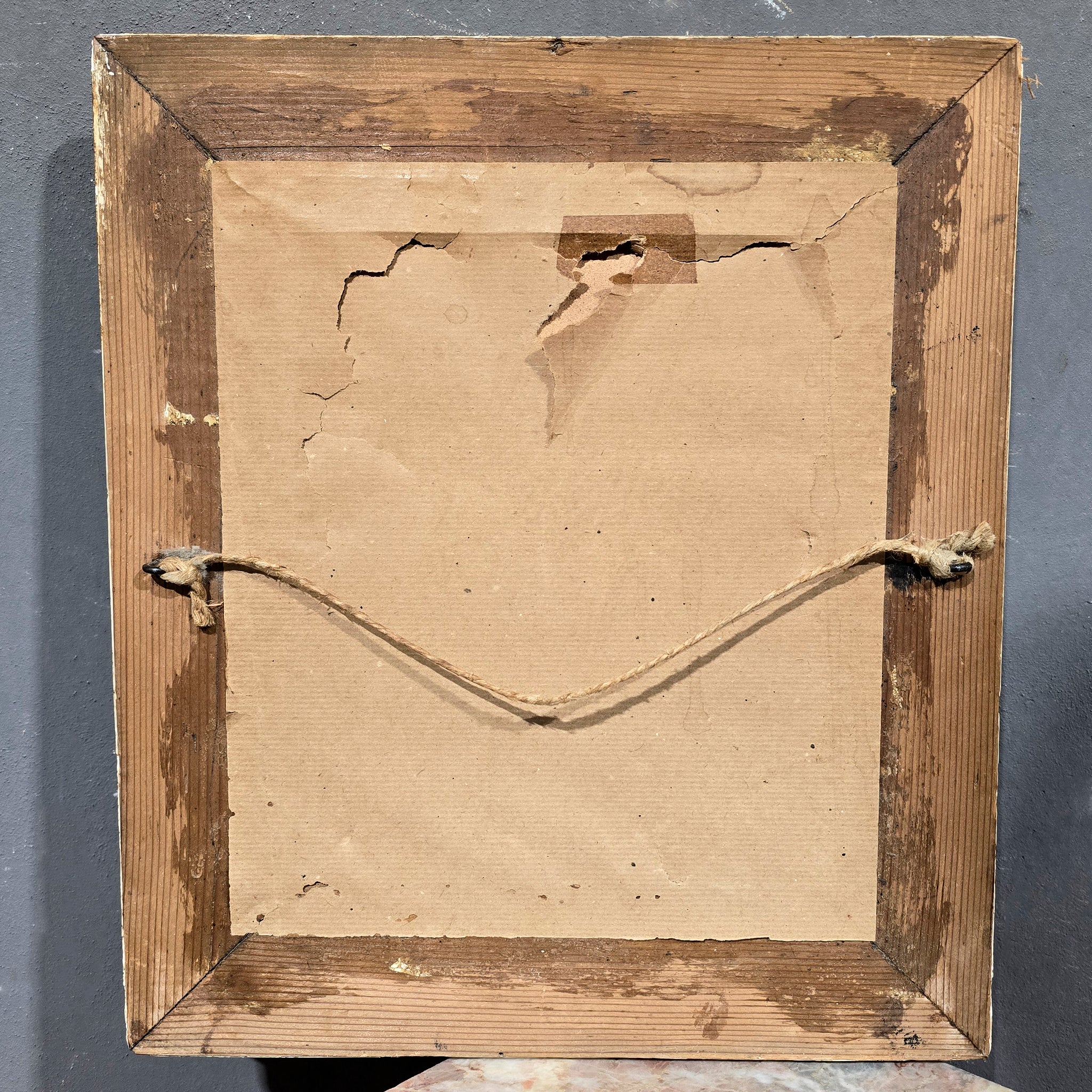 Ancienne peinture sur cuivre datant du XVIIIe siècle représentant l'image de la Madonna del dito, insérée dans un cadre en bois sculpté et doré.