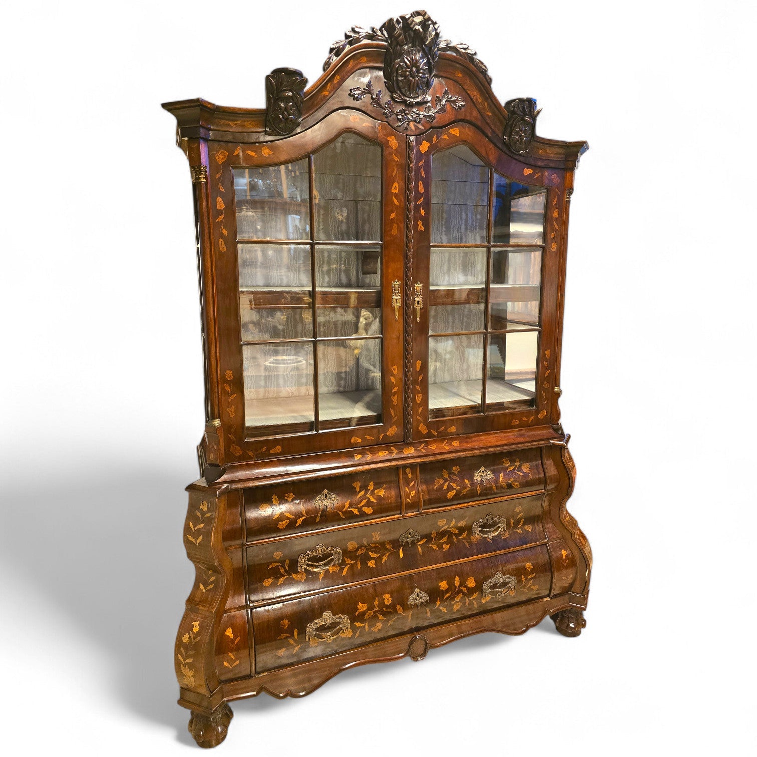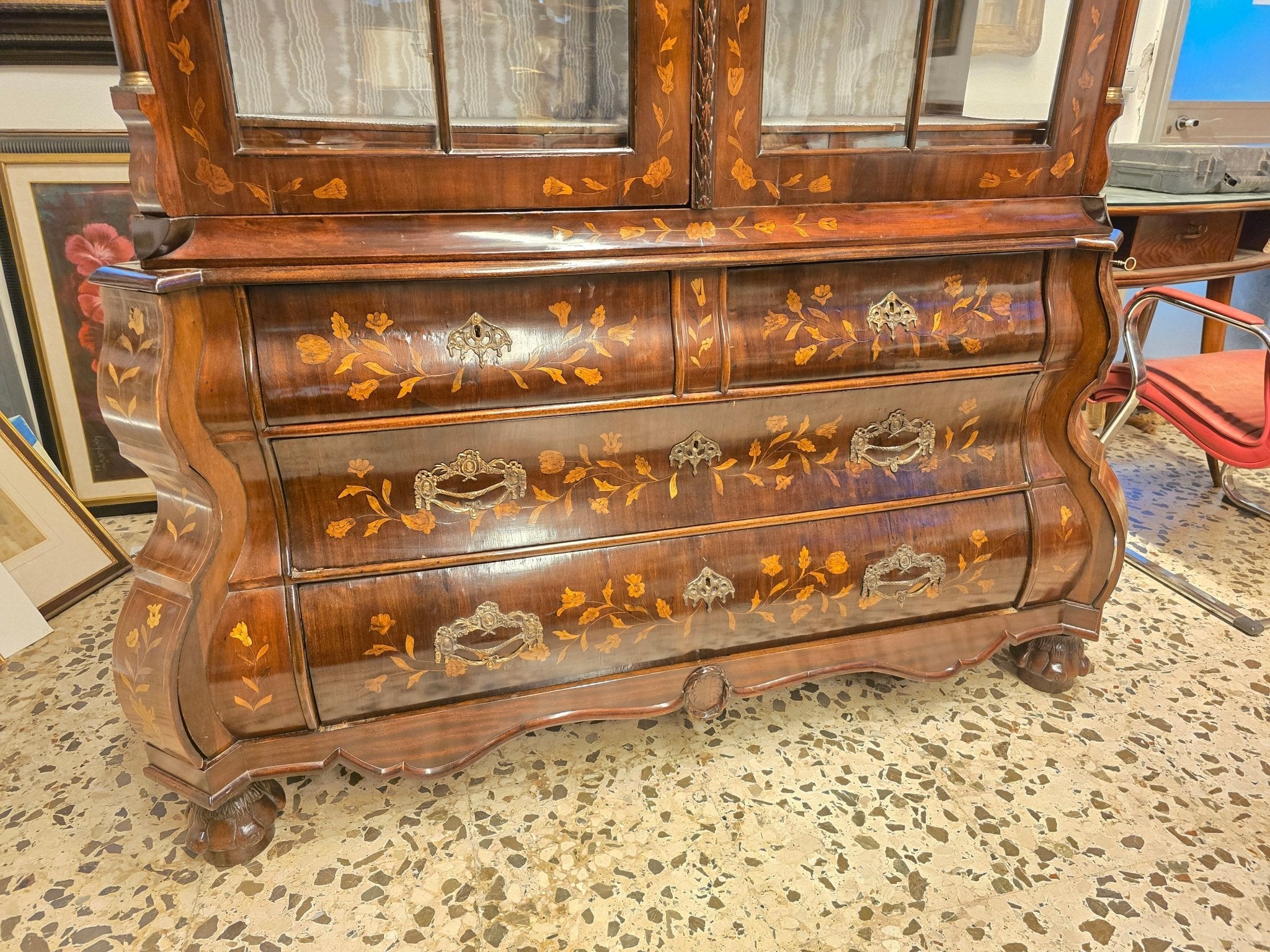 Mobile di gran gusto, oltre che di grande qualità nelle lavorazioni e negli intarsi, eseguiti in legni pregiati chiari con figure naturalistiche.