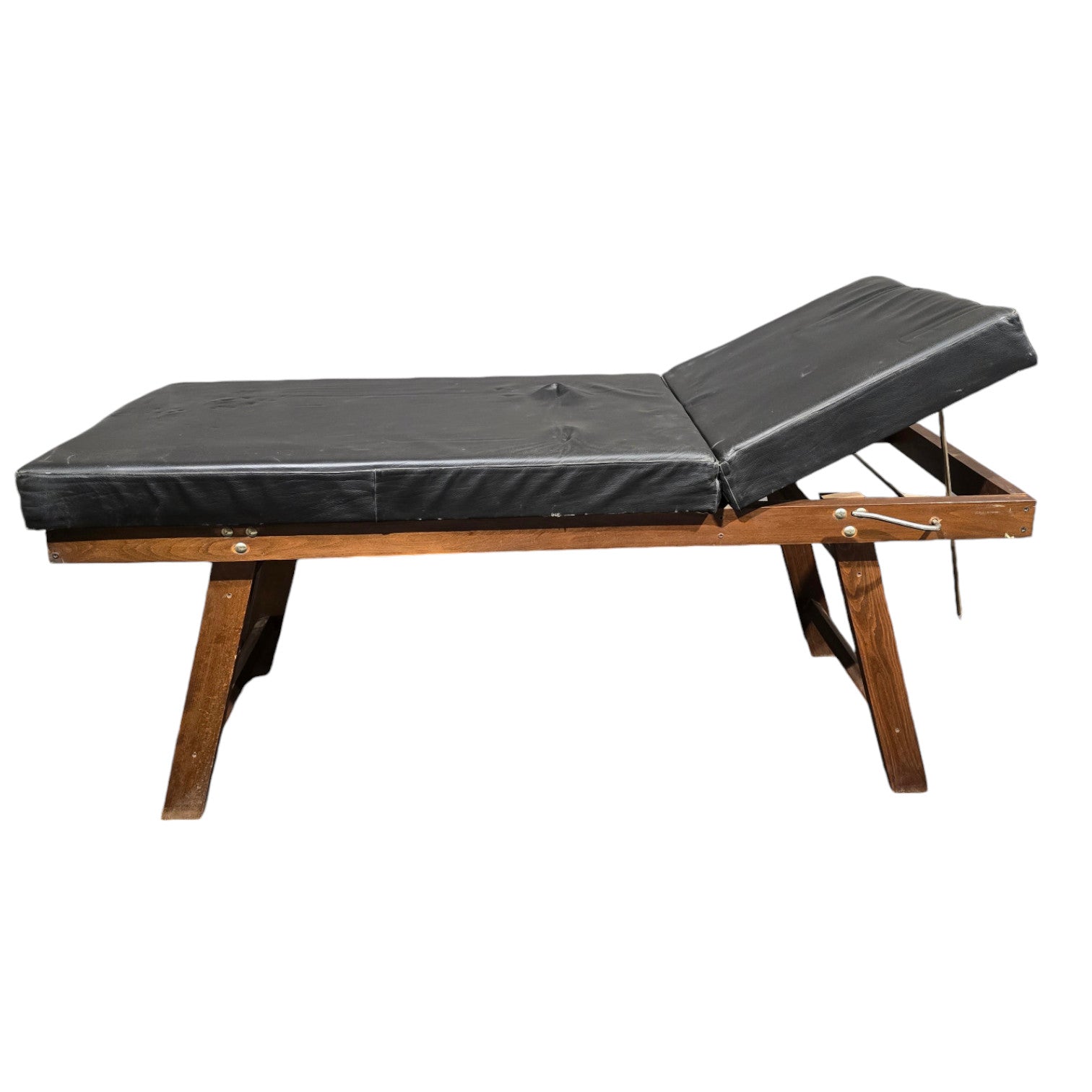 Lit médical vintage en bois et cuir.