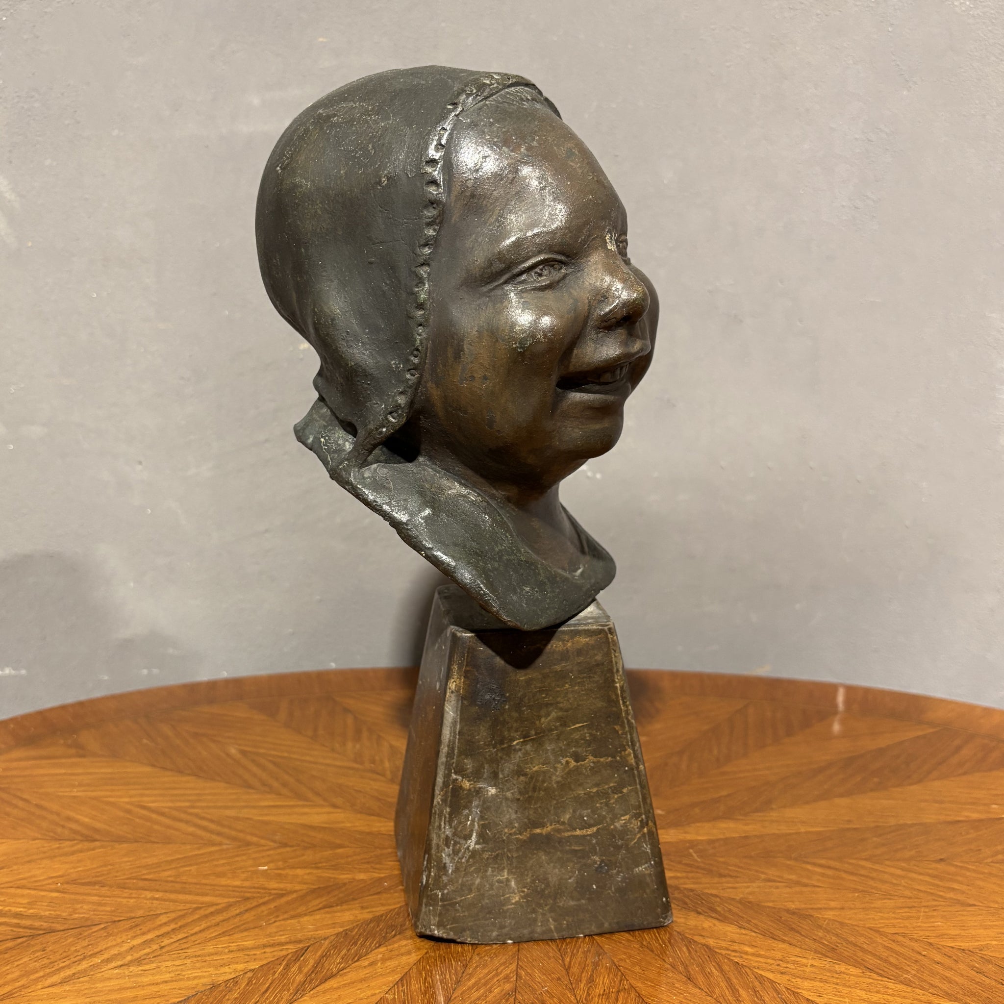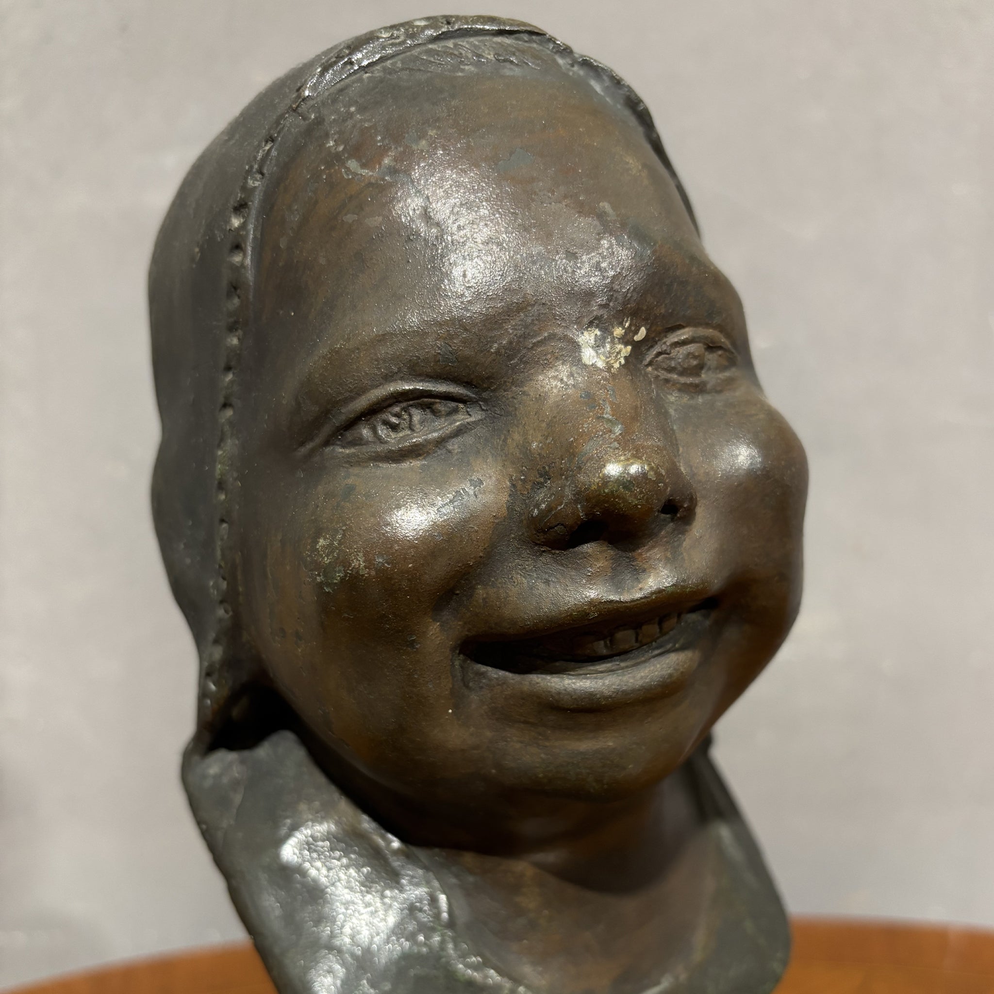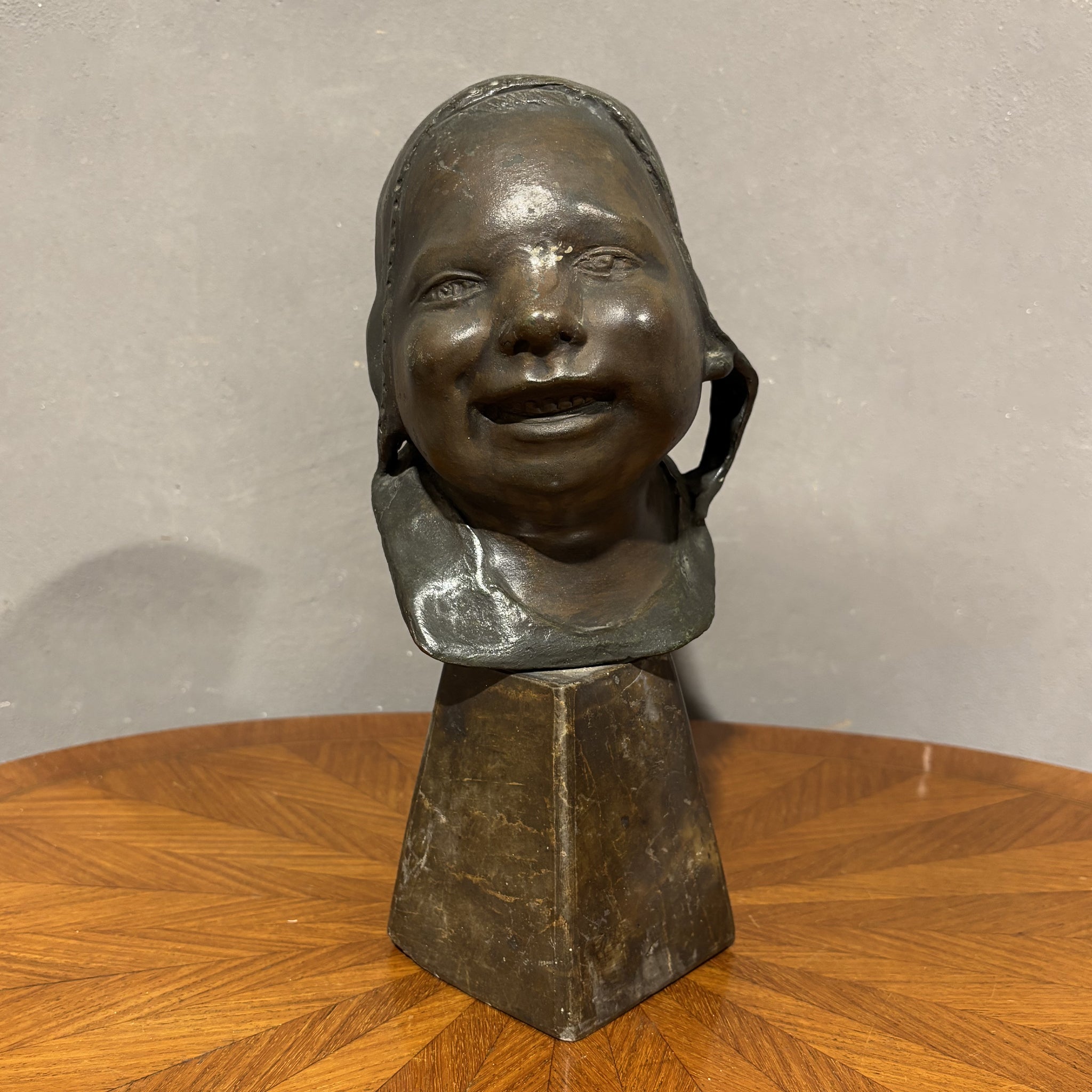 Affascinante busto in bronzo firmata Saverio Gatto che ritrae un fanciullo con espressione vivace e spensierata, i cui tratti sono modellati con grande sensibilità e realismo.