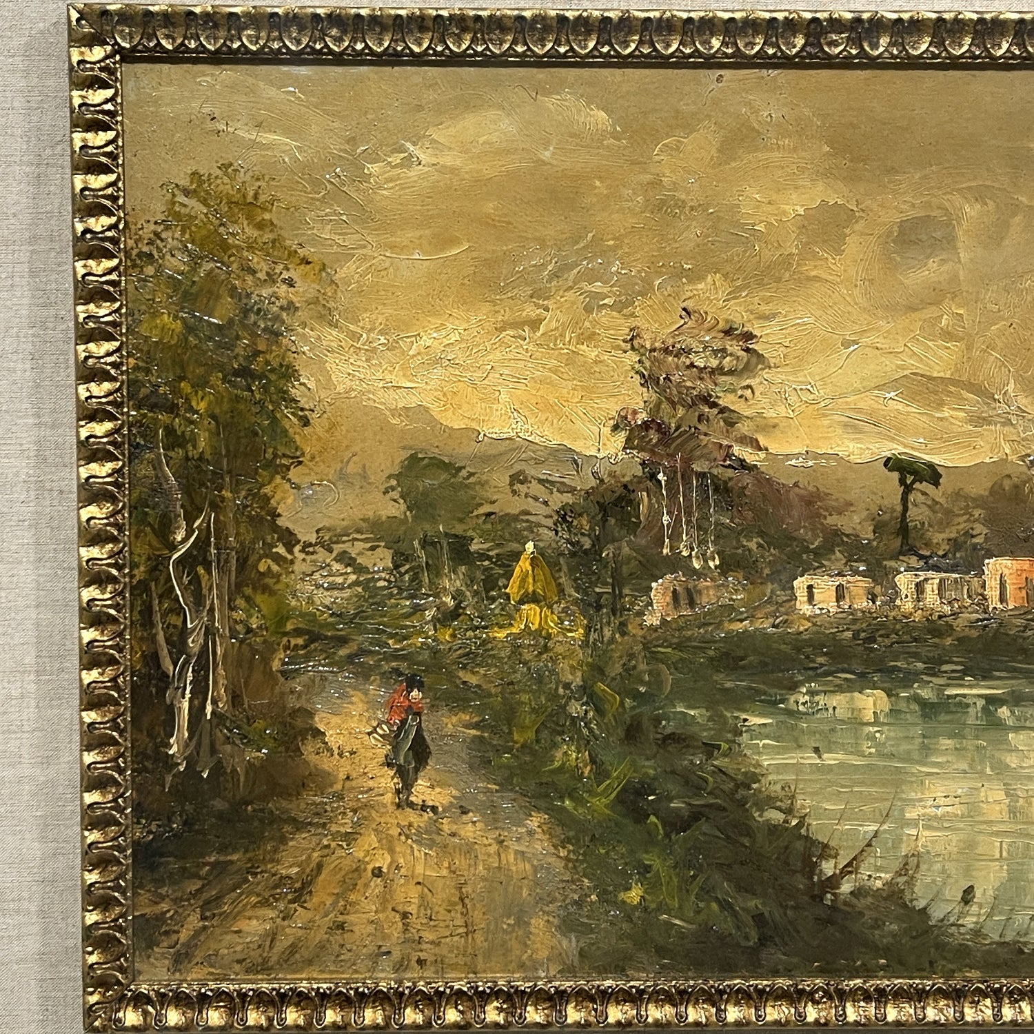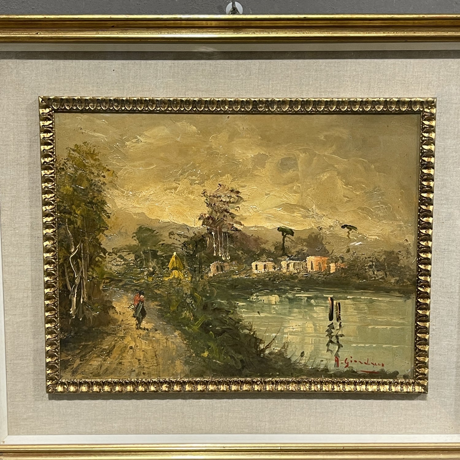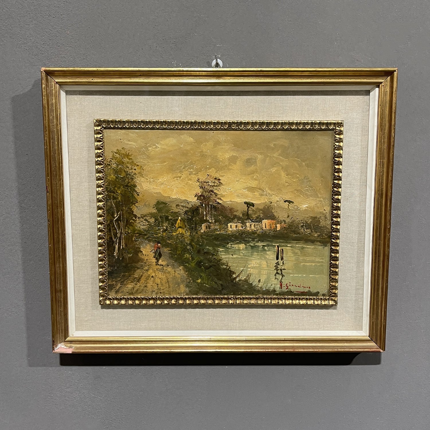 Dipinto ad olio su tavola del maestro Antonio Giordano ( XX sec ) , inserito in cornice in legno dorato.