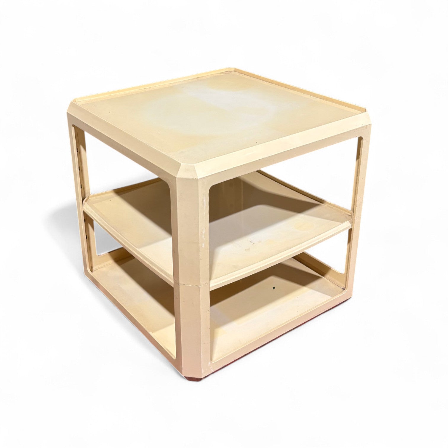 Affascinante tavolino modulare in plastica beige originale Kartell anni '60 con quattro ruote piroettanti e integre originali.
