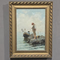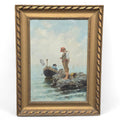 Dipinto olio su tela Pescatore su scoglio, XIX secolo