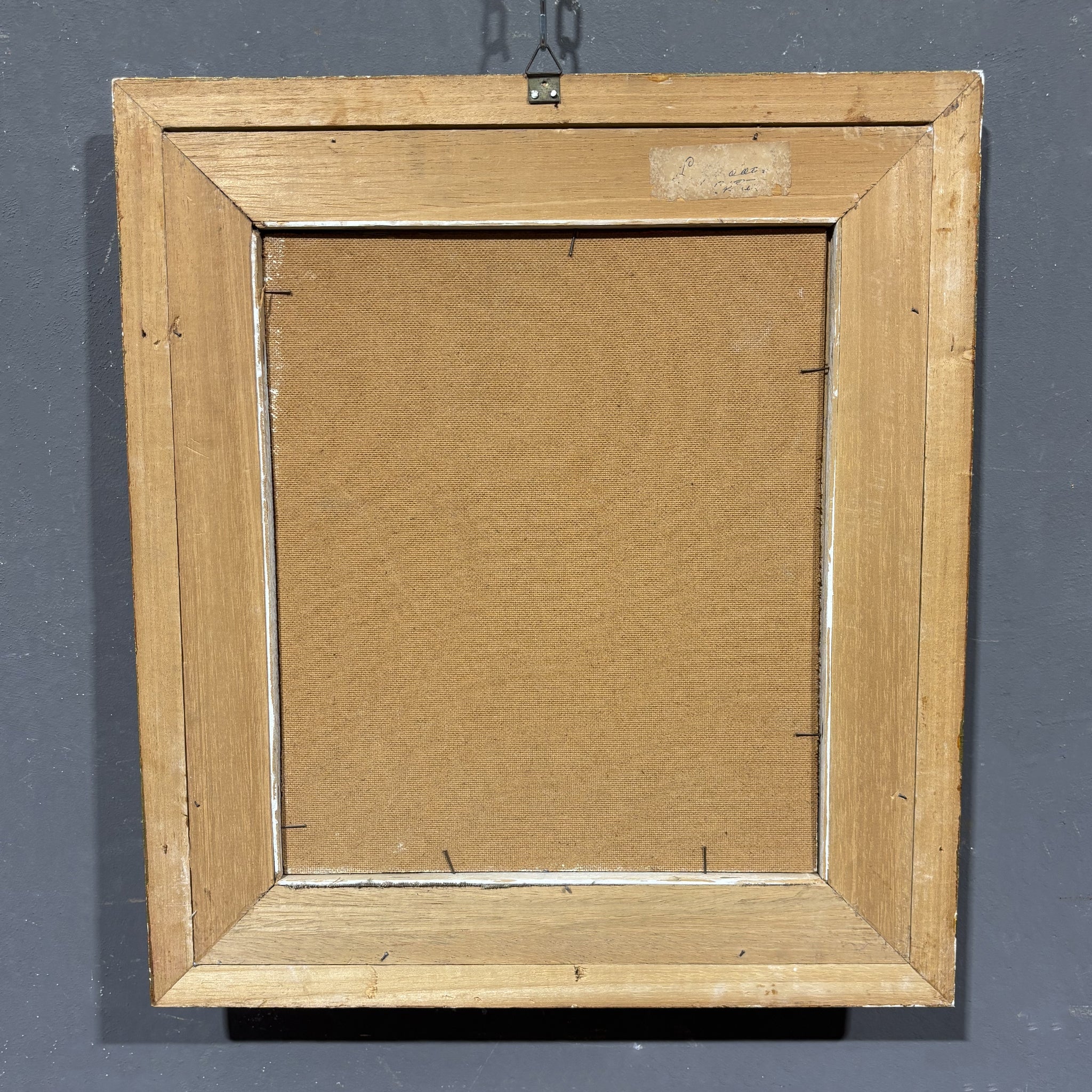 Dipinto ad olio su tavola inserito in cornice con teca in vetro.