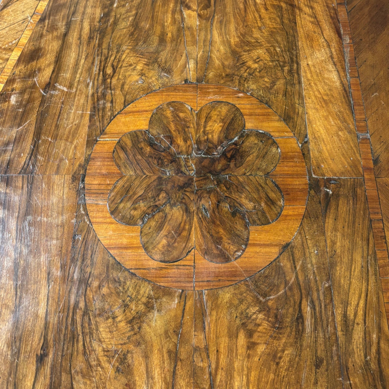Mobile appartenente al XVIII secolo, di produzione napoletana originale del periodo con lavorazioni su base in noce, bois de rose, acero con quadrifoglio entro riserve a filettature al centro dei cassetti, sui lati e sul piano.