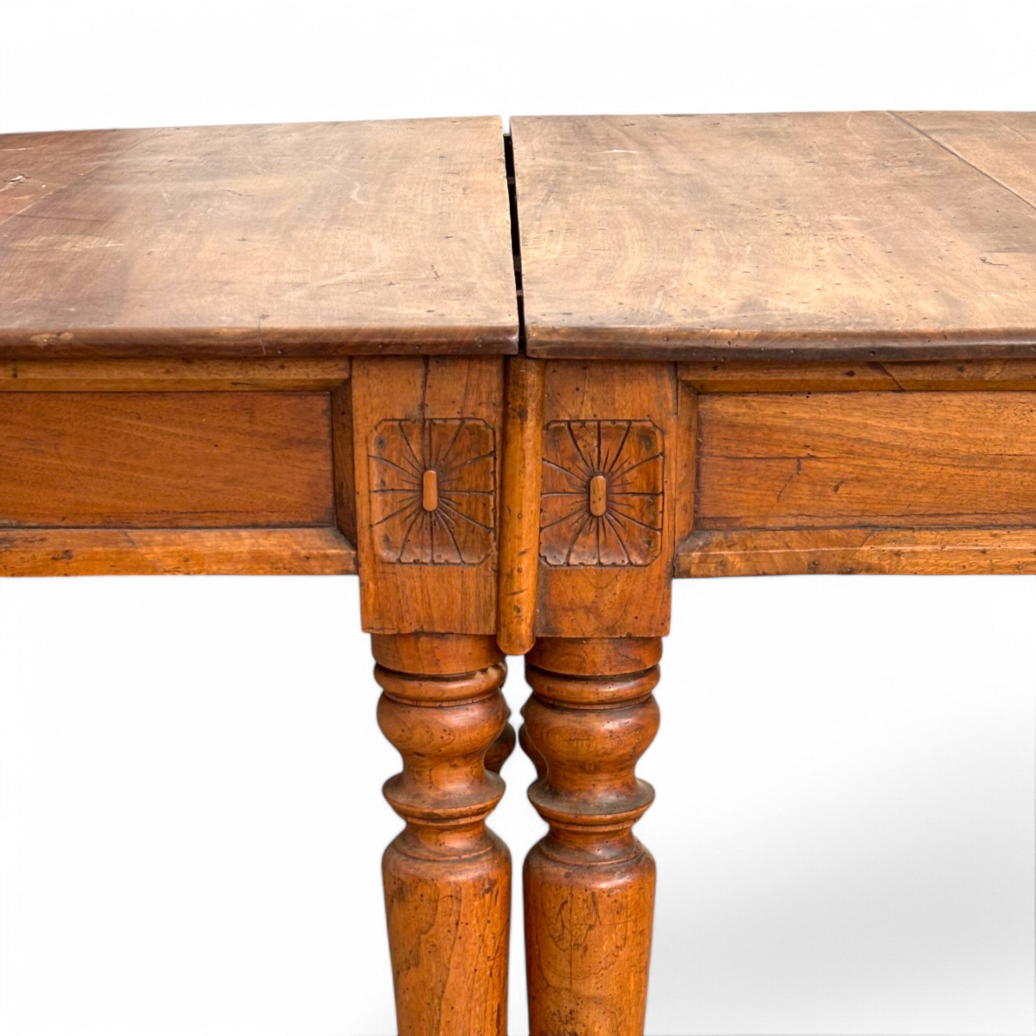 Importante ed imponente tavolo napoletano divisibile a due mezzelune interamente in legno massello.