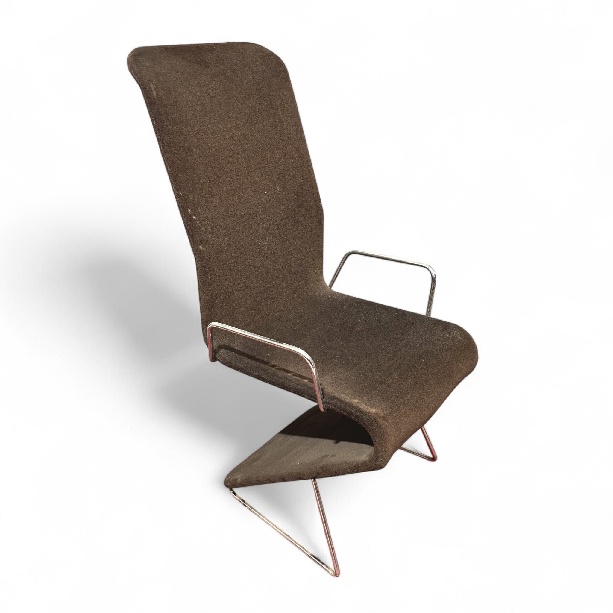Il modello "Pellicano" è riconoscibile per la sua forma a "Z" o "onda" della base e per i braccioli in metallo cromato che si estendono dalla struttura.