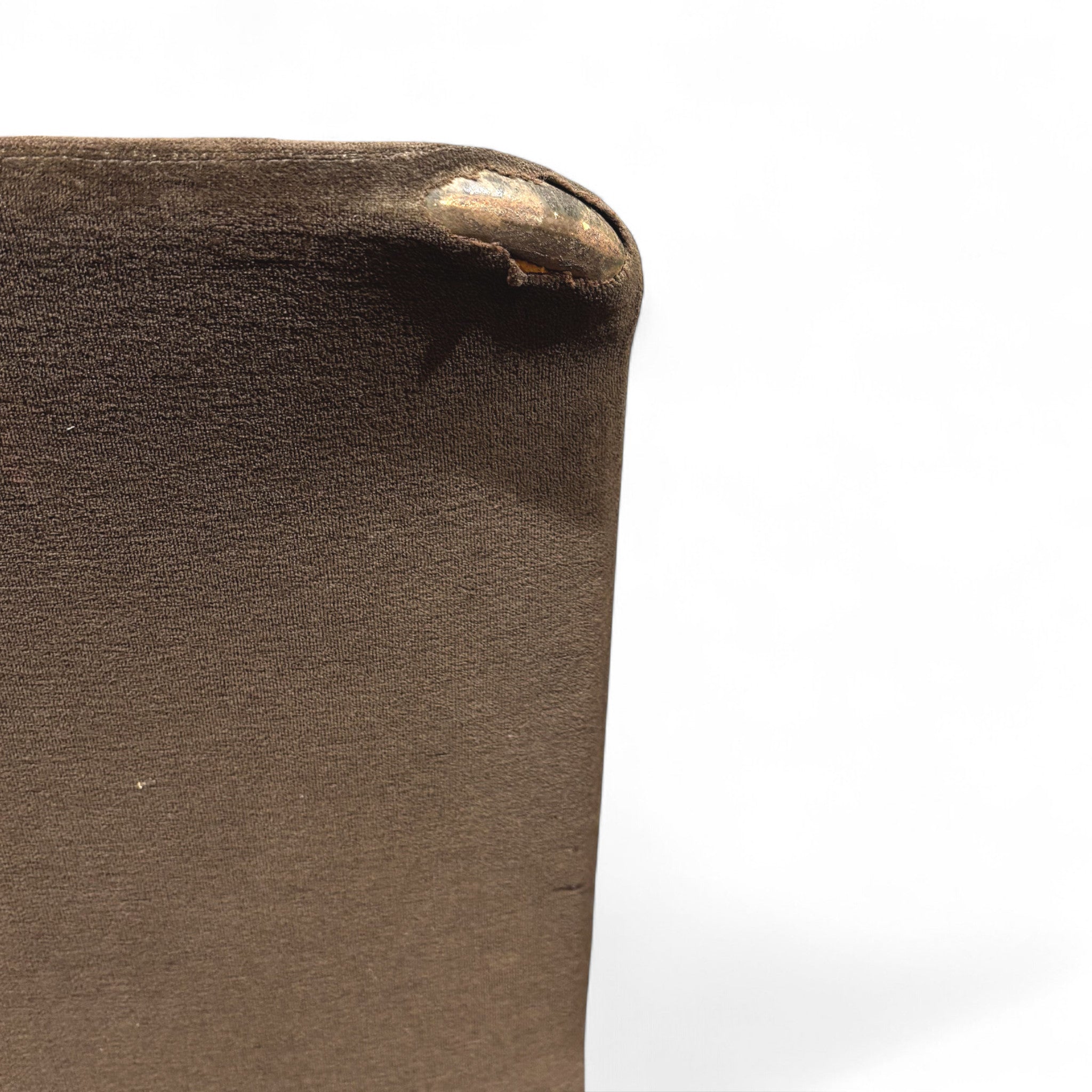 La seduta e lo schienale sono un unico elemento curvo, rivestito in tessuto scuro.