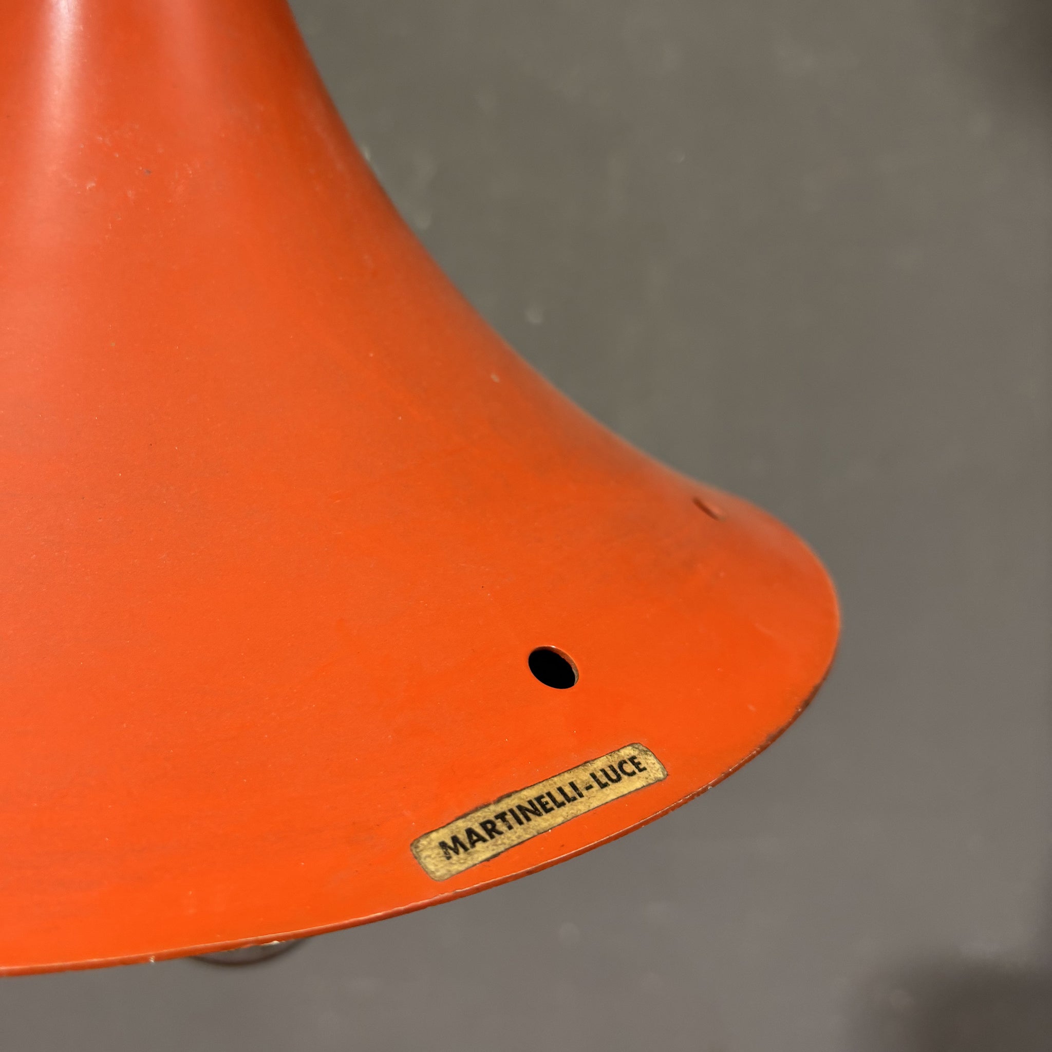 Raro lampadario di Martinelli Luce che rappresenta il design iconico italiano di metà secolo, con un design audace e scultoreo, tipico dell'estetica innovativa di Martinelli luce.